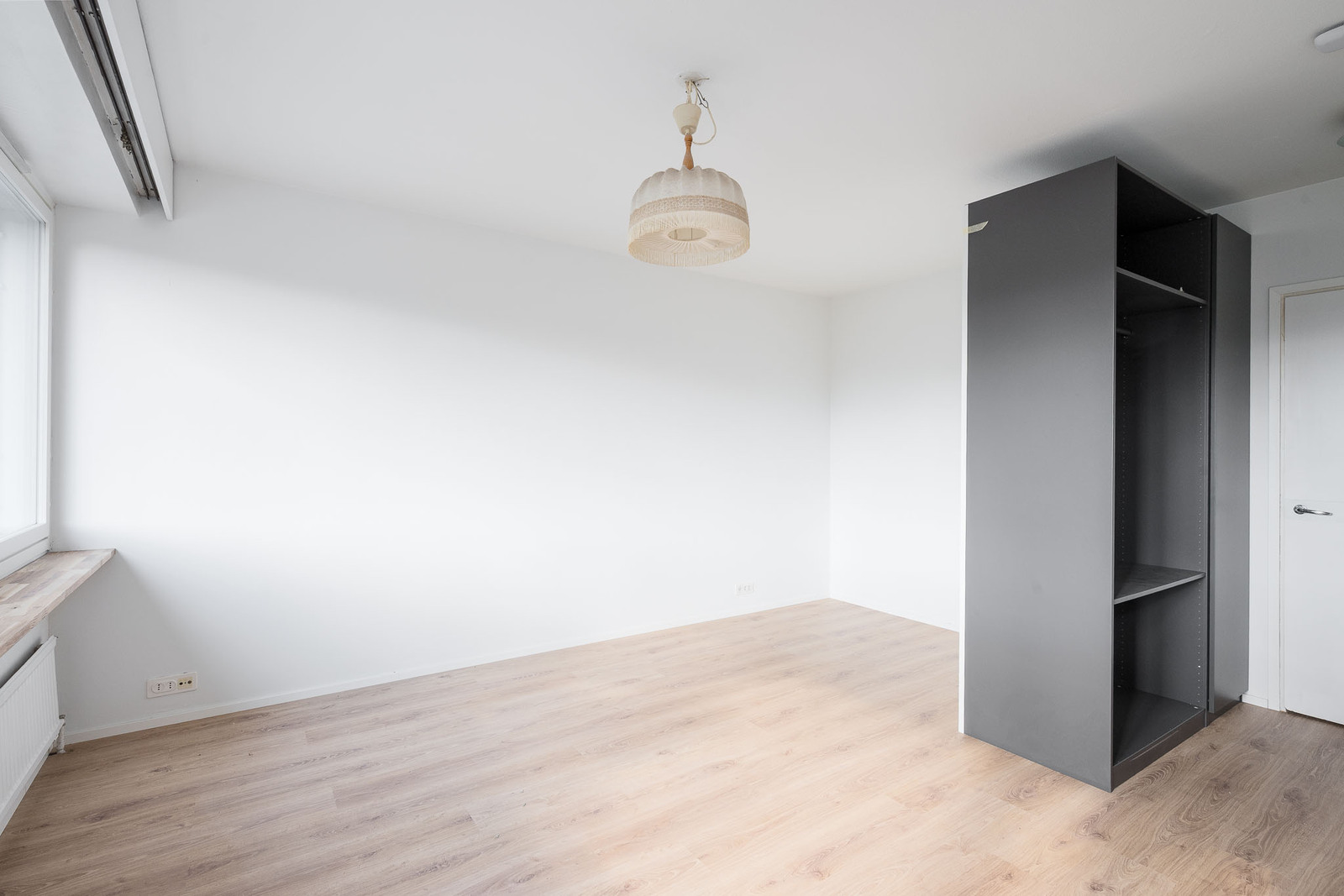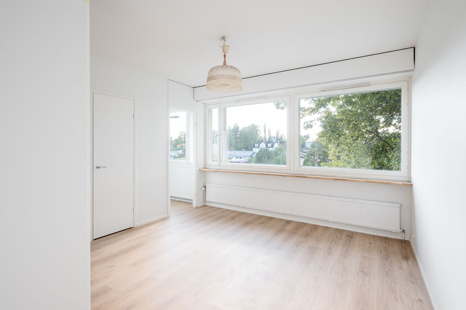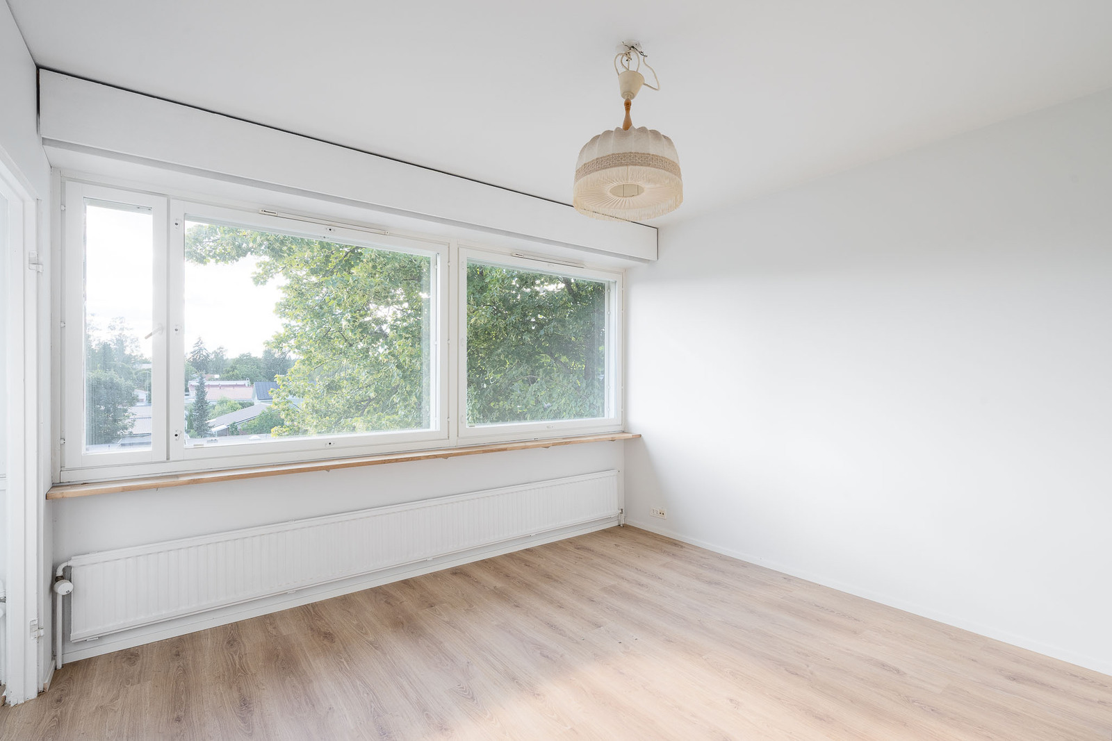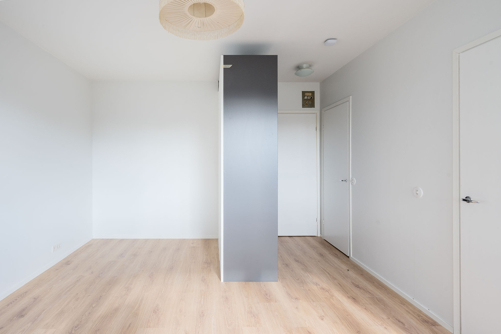 Lattia laminaattia ja seinät maalattu. |