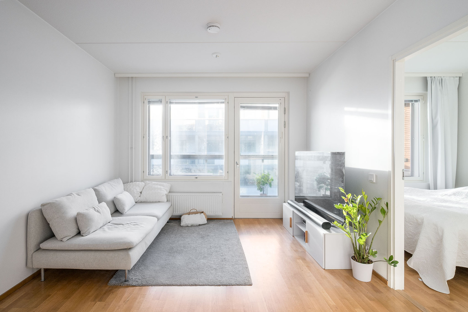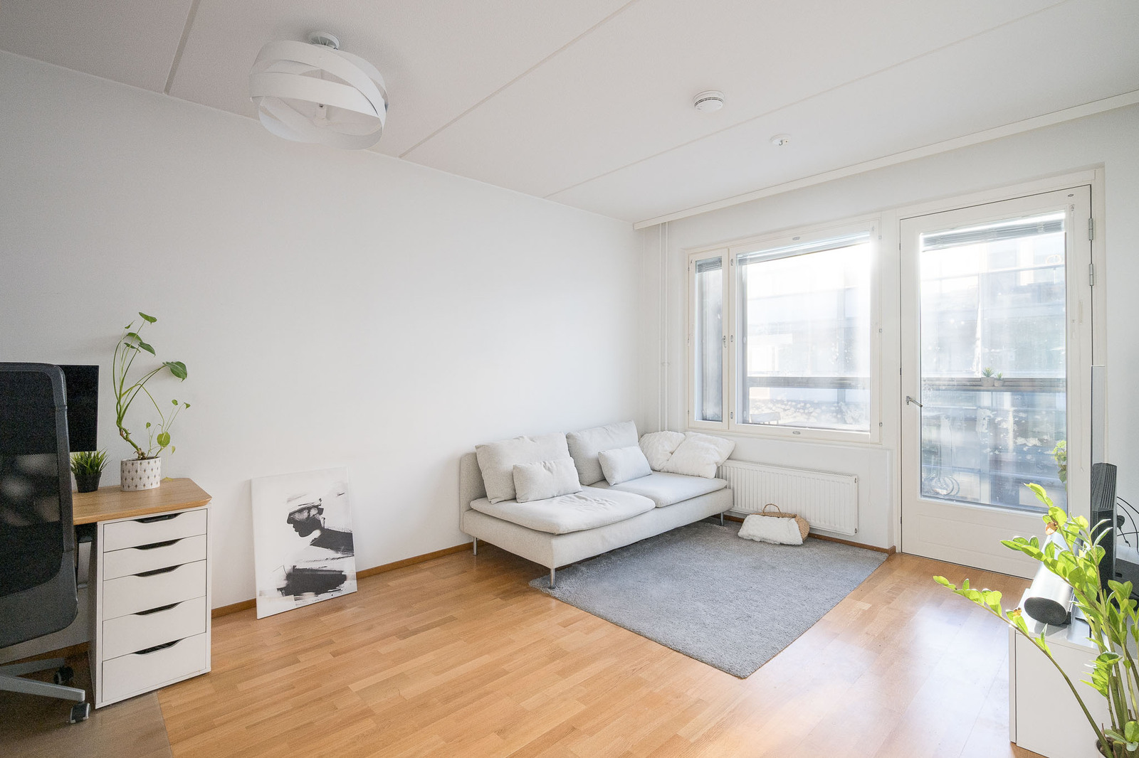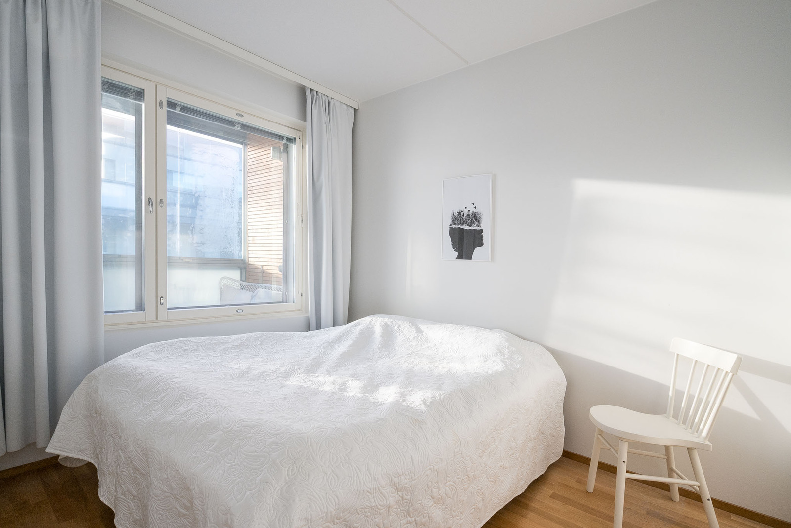 Lattia tammisauvaparkettia. Seinät maalattu. |