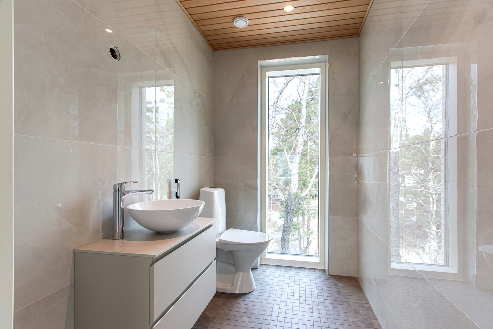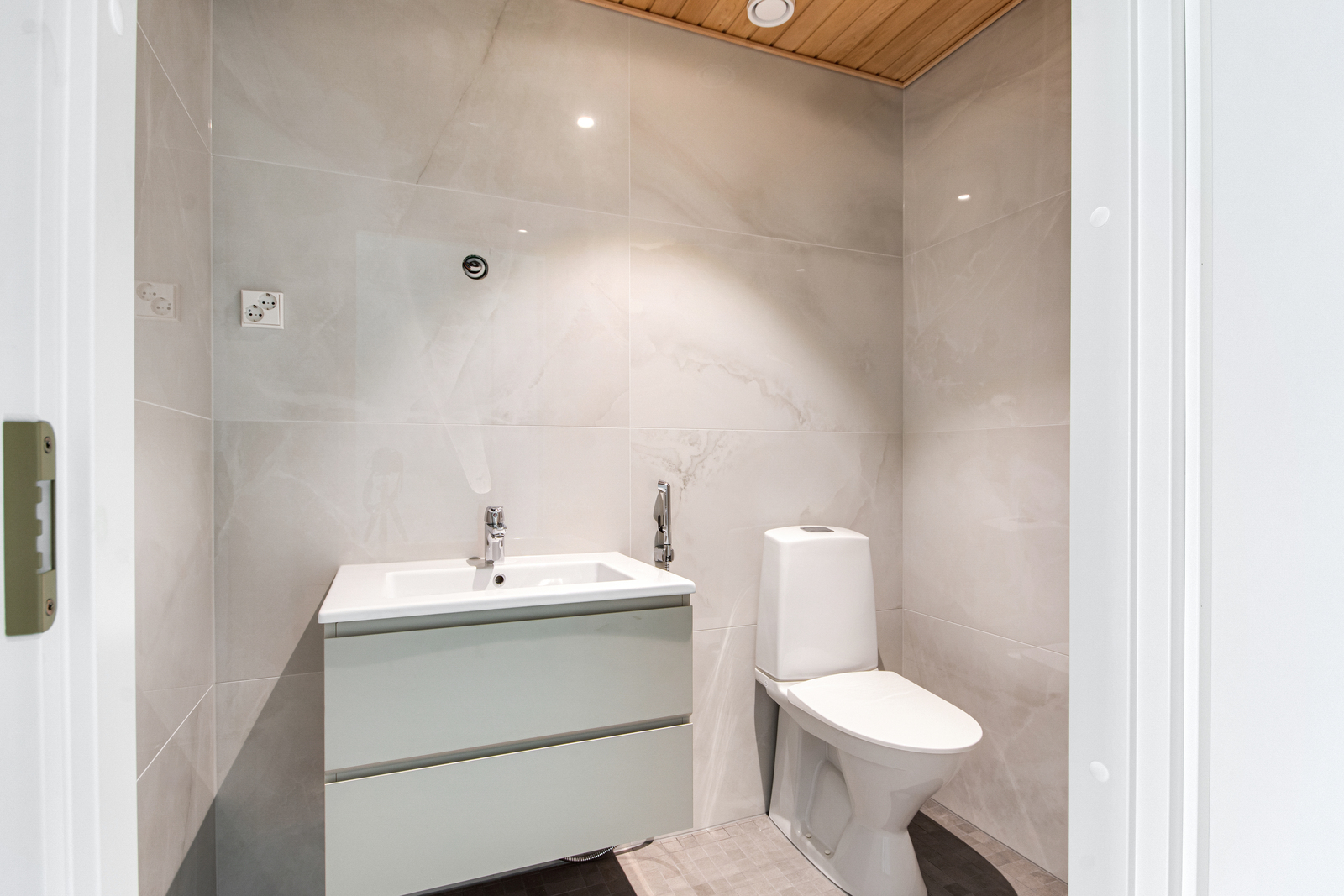Erillinen wc eteisessä sekä masterbedroomin yhteydessä. |