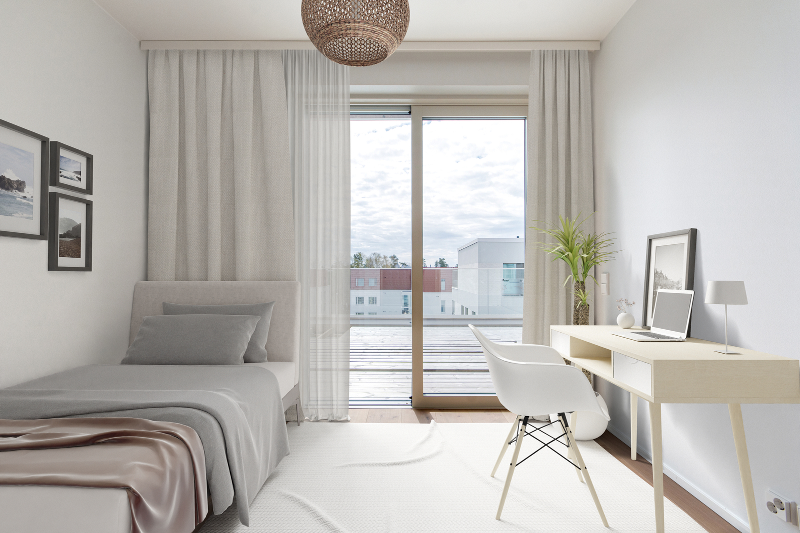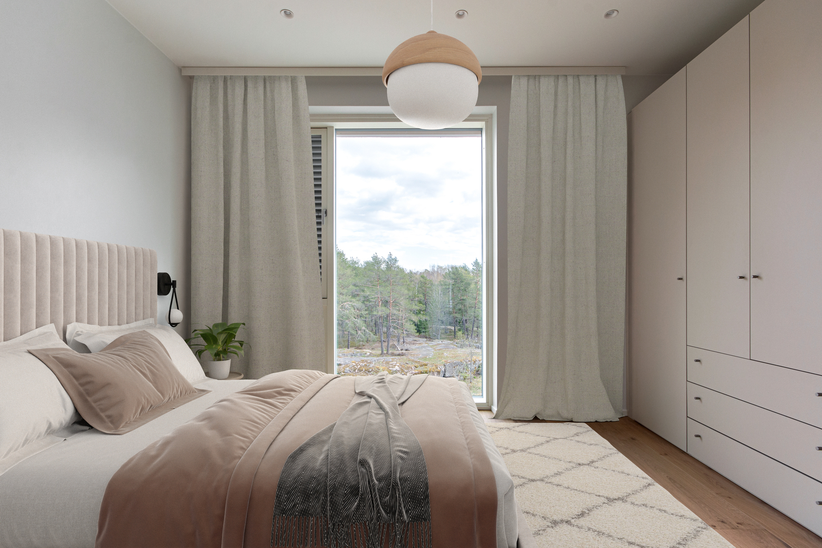 Makuuhuoneita on viisi. Suurin makuuhuoneista, masterbedroom, sijoittuu omaan rauhaansa huoneiston toiseen päätyyn. Neljä makuuhuonetta sijoittuvat huoneiston toiseen päähän. Kaikissa makuuhuoneissa on kiinteät kaapistot, kahdesta huoneesta on käynti kattoterassille. |
