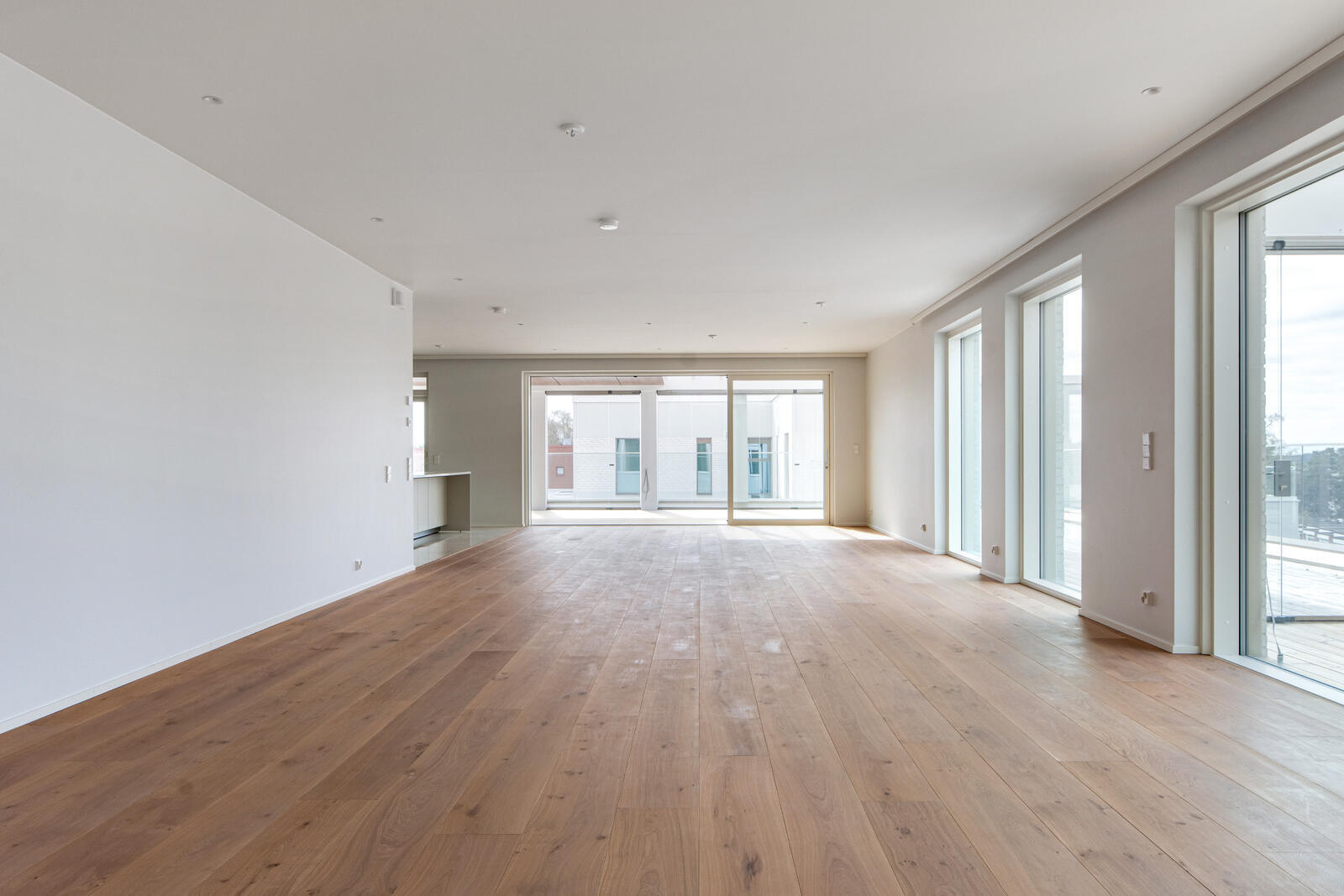 Lähes 100 neliön oleskelutila on ehdottomasti tämän asunnon keskipiste. Näkymät etelään merelle ja käynti huoneistoa ympäröivälle kattoterassille ihastuttavat. |