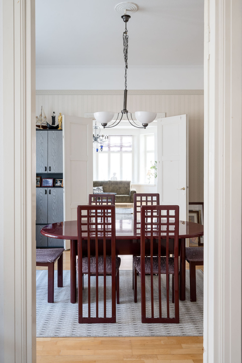 ARVOASUNTO PARAATIPAIKALLA ! Vapautumassa neljännen (4. krs) kerroksen tilava läpitalon kulmahuoneisto historiallisen kauniista, v. 1911 valmistuneesta myöhäisjugendtyylisestä arvokiinteistöstä, joka sijaitsee halutulla alueella Säätytalon puiston kupeessa. Tästä kulmahuoneistosta tekee poikkeuksellisen huikea yli kolmen metrin huonekorkeus ja kolme valtavan iso erkkeriä, jotka tuovat tilaan runsaasti valoa. Vanhat peiliovet ja syvät ikkunalaudat edustavat oman aikakautensa tunnelmaa. Asunto Oy Maariankatu 14 on esimerkillisen hyvin hoidettu hissillinen yhtiö - kaikki isot remontit on jo takanapäin mm. linjasaneeraus 2013, pihakansi 2018 ja viimeisimpänä julkisivut, ikkunat, parvekkeet ja vesikatot 2022. Hoitovastike on maltillinen ja vesimaksu sisältyy vastikkeeseen. Voitkin muuttaa huolettomin mielin - suurempia korjaustarpeita ei ole lähitulevaisuudessa näkyvissä. Tässä asunnossa on viihdytty pitkään ja se vaatii kunnostusta. Nyt sinulla onkin loistava mahdollisuus luoda unelmiesi kaupunkikoti Helsingin vanhimpaan kaupunginosaan. Tämä huoneisto on sinulle, joka arvostat tilaa, asumisen väljyyttä ja sijaintia kaupungin keskustassa. Kuvissa myös Forma Suunnittelun tekemä pohjaratkaisu, jossa kolme makuuhuonetta. Tervetuloa ihastumaan ! MYYNTI JA ESITTELYT Merja Alamettälä-Pulkkinen 040 961 0701 merja@kotimeklarit.com