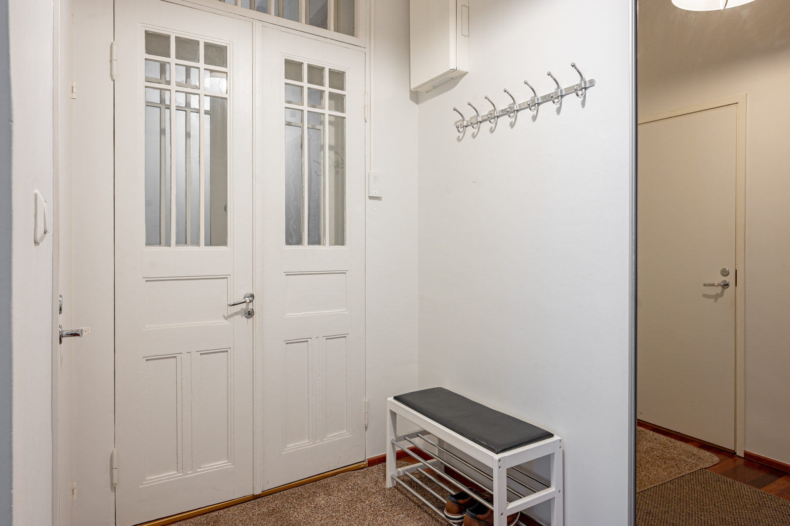 Eteisessä liukuovikaapistot. Tilava vaatehuone. kattopinnoista: Eteinen, Vaatehuone |