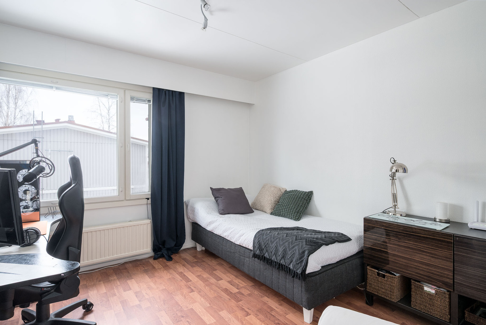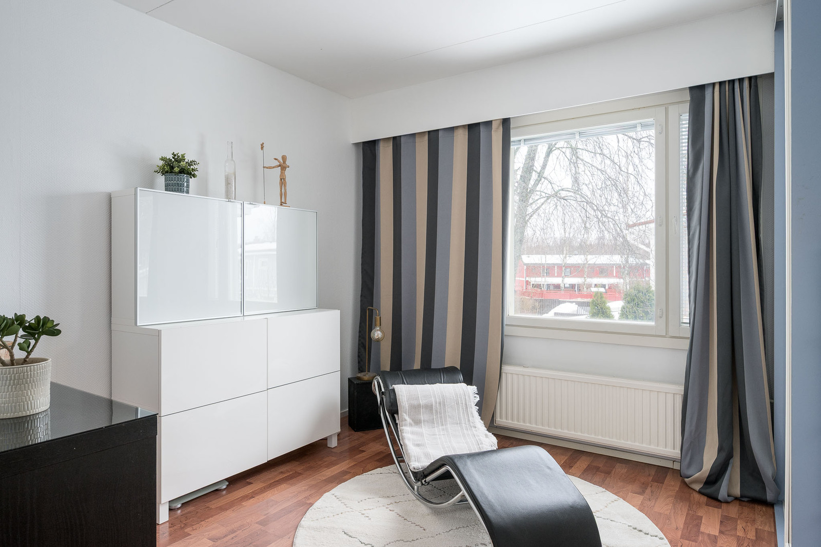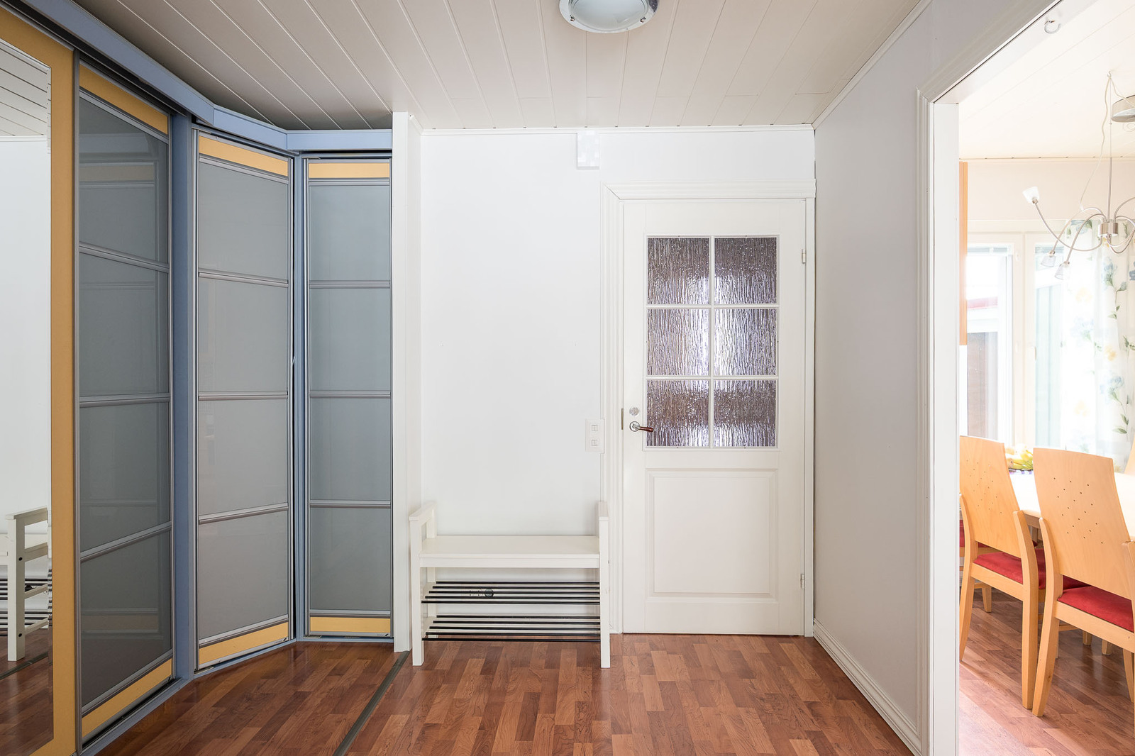 ESITTELY SUNNUNTAINA 12.4. KELLO 15:45-16:30. TERVETULOA! Tilava ja lämminhenkinen koti Rajakylän rauhassa Tässä kodissa yhdistyvät tilavuus, valo ja rauhallinen ympäristö tavalla, joka tekee arjesta mutkatonta ja viihtyisää. Kahteen kerrokseen rakentuva rivitaloasunto tarjoaa selkeät, toimivat tilat ja kodikkaan tunnelman, joka mukautuu elämäntilanteiden mukana. Vuosien varrella tehdyt päivitykset tuovat kokonaisuuteen huolitellun ilmeen. Lämmitys hoituu kaukolämmöllä vesikiertoisten pattereiden kautta ja kustannukset sisältyvät hoitovastikkeeseen. Valoisa alakerta, joka kutsuu viihtymään Olohuone tulvii luonnonvaloa ja avautuu suoraan aurinkoiselle takapihalle. Katettu terassi jatkuu omalle pihalle, jossa on tilaa leikeille, oleskelulle ja kesäpäivien viettoon. Pihan leikkimökki hurmaa perheen pienimmät ja tekee pihasta viihtyisän. Keittiöön mahtuu reilu ruokailuryhmä ja alakerran erillinen wc tekee arjesta sujuvaa. Yläkerran rauha ja oma sauna Yläkerrassa sijaitsevat makuuhuoneet tarjoavat oman rauhallisen kerroksensa. Pesuhuoneen yhteydessä oleva sauna on hiljattain uudistettu lauteineen ja panelointeineen. Kerrosten selkeä jako tekee kodista toimivan niin perheelle, etätyöhön kuin harrastuksille. Sijainti, joka tekee arjesta helppoa Rajakylässä kaikki tärkeä on lähellä. Pizzeria on keihäänheiton päässä (130 m), päiväkoti, koulu, sekä neuvola löytyvät kävelyetäisyydeltä (1,4 km). Lähimmät kaupat sijaitsevat Länsimäessä (1,6 km), Jakomäessä (1,4 km) ja Kontulassa (1,4 km). Länsimäen terveysasemalle on matkaa noin 1,7 kilometriä. Bussipysäkki on aivan vieressä, ja Helsingin rajan pysäkillekin on vain noin 350 metriä. Autolla liikut nopeasti Kehä III:lle sekä Lahden- ja Porvoonväylille. Ulkoilusta nauttivalle sijainti on erinomainen: lenkkipolut alkavat lähes takapihalta ja vieressä sijaitseva pallopuisto tarjoaa leikki- ja kuntoilualueen sekä tenniskentät. Lisätiedot Tuire 050 3434 604 tai tuire@kotimeklarit.com