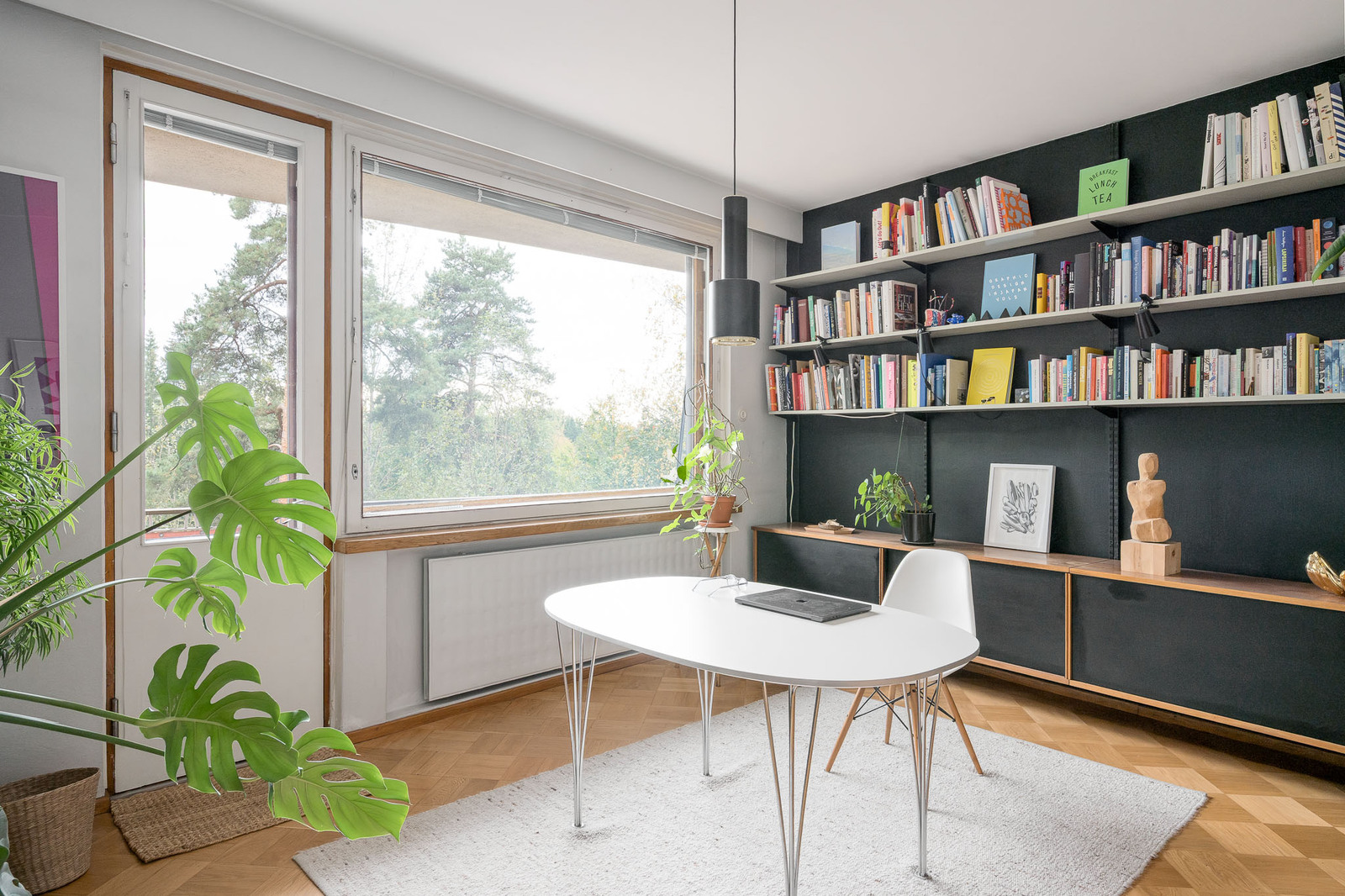 ESITTELY SUNNUNTAINA 26.10. KELLO 15:30-16:15. TERVETULOA! Hurmaava ja kaunis päätyhuoneisto vehreässä 1950- luvun arkkitehtuuria edustavassa Meilahdessa. Tämän ihanan kodin kutsuva ja harmoninen tunnelma alkaa heti asuntoon sisään astuessa. Avara olohuone yhdistyy modernilla lasiseinällä tilavaan työhuoneeseen, joka toimii mainiosti myös yhtenä makuuhuoneena. Olohuoneessa tunnelmanluojana ja katseenvangitsijana on kaunis takka. Myös olohuoneen, ruokasalin ja eteisaulan seiniä peittävä kaunis mahonki luo arvokkaan ja erityisen tunnelmaan huoneistoon. Tilava ruokasali, kolme makuuhuonetta ja ihastuttava talon arkkitehtuuria mukaileva keittiö muodostavat avaran ja toimivan kodin suuremmallekin perheelle. Asunto-osakeyhtiö Kelarinne on hyvin hoidettu taloyhtiö, jossa on vuosien myötä tehty paljon sen arvoa ylläpitäviä remontteja mm. LVIS- remontti on tehty 2004. Yhtiö on siitynyt myös maalämpöön ja on toteuttanut aurinkoenergiahankkeen. Yhtiön vuokratuotot ovat n. 118 000€/vuosi, hoitovastike vain 2,80€/m2. Tänne on ilo ja huoletonta muuttaa. MYYNTI JA ESITTELYT: Nina Asteljoki, Tj, LKV p. 0400 444 220 nina@kotimeklarit.com