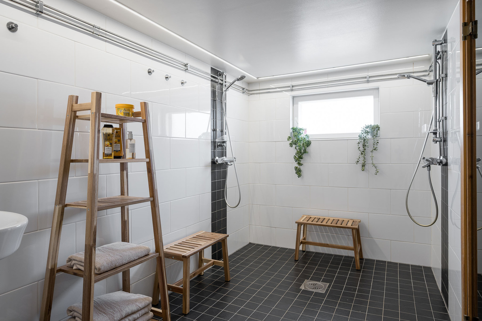 Oma sauna2 x suihku Lattia: laatta Seinät: kaakeli Kiukaan tyyppi: sähkökiuas |