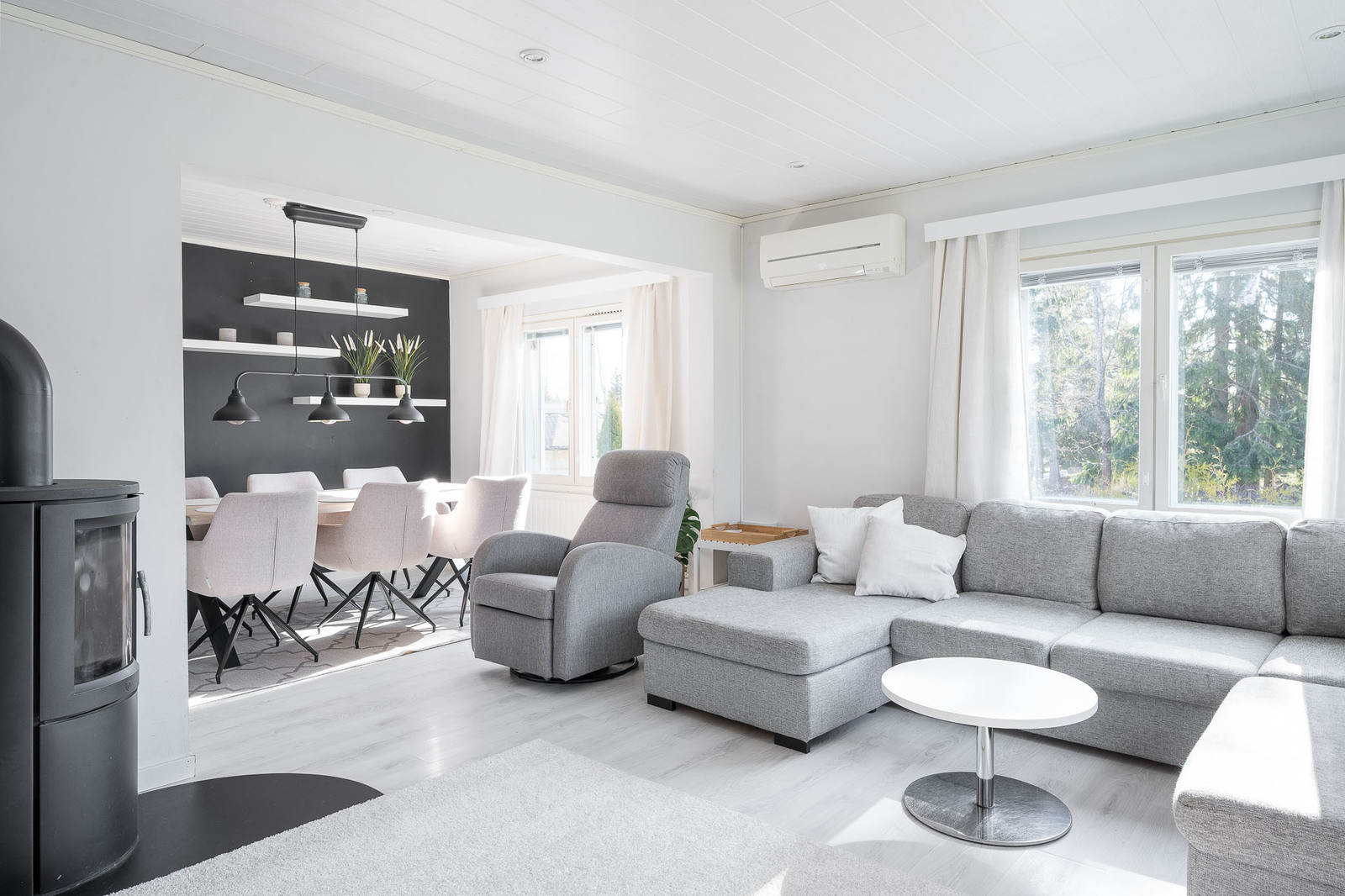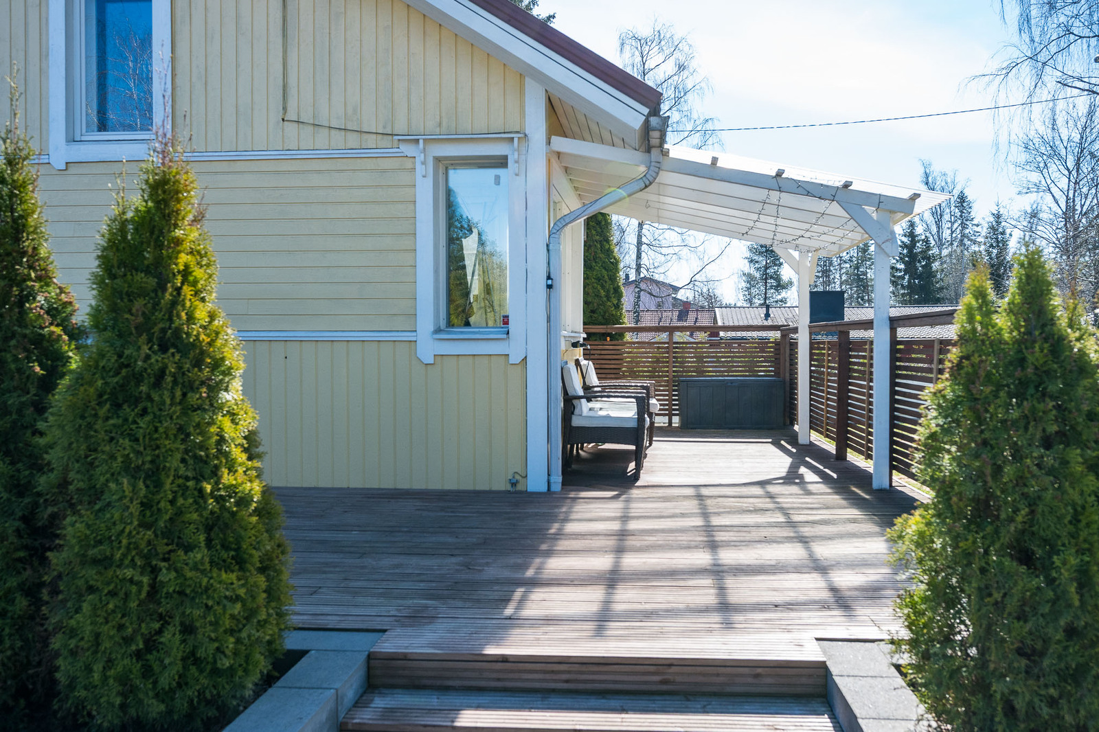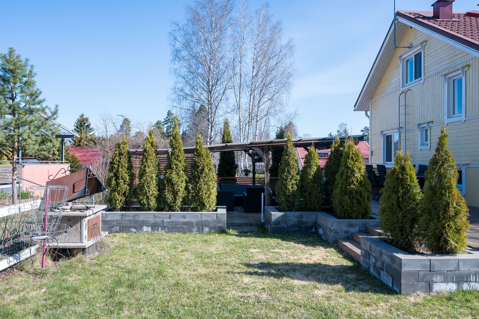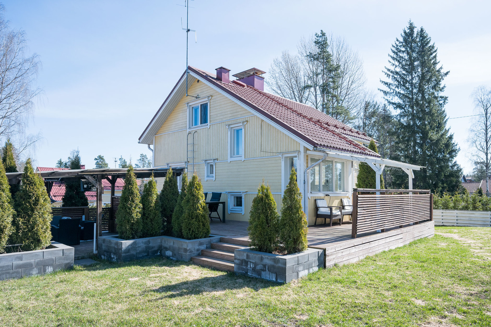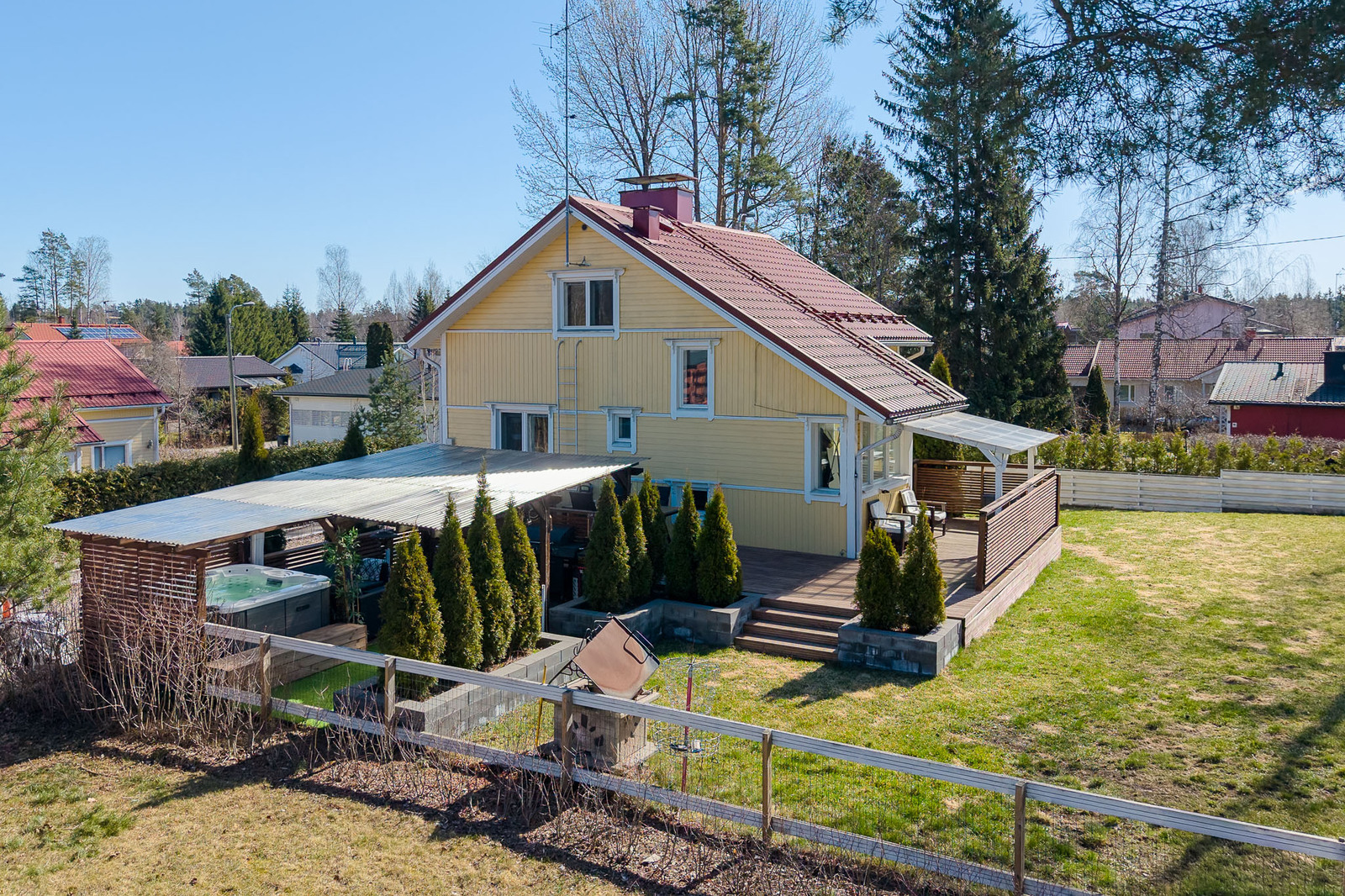 Unelmien remontoitu kolmikerroksinen rintamamiestalo isolla tontilla – kesähuone ja poreamme kruunaavat kokonaisuuden. Tervetuloa kotiin, jossa yhdistyvät perinteinen tunnelma, toimiva pohjaratkaisu ja moderni asumismukavuus. Tämä ryhdikäs ja vuosien varrella kattavasti remontoitu rintamamiestalo tarjoaa tilaa ja mahdollisuuksia kolmessa kerroksessa – täydellinen kokonaisuus niin perheelle kuin yrittäjällekin. Kokonaispinta-ala 148 m2. Kodissa on selkeä ja käytännöllinen pohjaratkaisu: avara olohuone, viihtyisä avokeittiö, kolme makuuhuonetta sekä runsaasti säilytys- ja harrastetilaa. Kellarikerros tuo lisää monikäyttöistä tilaa esimerkiksi työhuoneeksi, kuntosaliksi tai arjen aputiloiksi. Kellarikerroksessa sijaitsee myös moderni saunaosasto kahdella suihkulla sekä tilava kodinhoitohuone jotka tekevät arjesta sujuvaa ja mukavaa. Pihapiiri on oma rauhallinen keidas. Iso tontti tarjoaa tilaa oleskeluun, leikkeihin ja puutarhaelämään. Kesähuone kutsuu viettämään pitkiä iltoja, ja poreamme viimeistelee arjen luksuksen – täällä nautit jokaisesta vuodenajasta. Taloon on tehty merkittäviä päivityksiä, mm. ikkunat, putkia ja sähköjä on uusittu, mikä tuo huolettomuutta pitkäksi aikaa. Lämmitysjärjestelmänä toimii öljy, ja lisäksi sähkölämmitys tukee asumismukavuutta. Sijainti Itä-Hakkilassa on rauhallinen mutta käytännöllinen: koulut, päiväkodit ja palvelut löytyvät läheltä, ja liikenneyhteydet toimivat sujuvasti. Tässä kodissa on fiilistä, tilaa ja mahdollisuuksia – tule ihastumaan paikan päälle. MYYNTI JA ESTTELY: Bettina Ruuskanen, LKV p. 0505908716 bettina@kotimeklarit.com