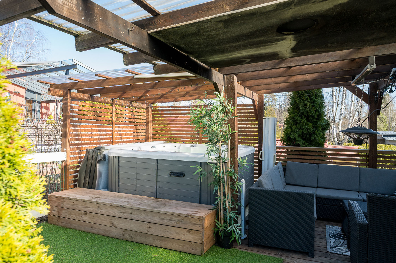 kesä olohuone poreammeineen kattopinnoista: Terassi |