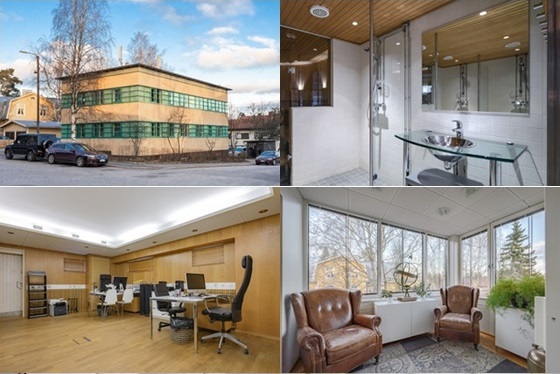 Kellarissa edustavat saunatilat, ala- ja yläkerroksessa uusitut toimistotilat, jotka toimivat myös itsenäisinä.