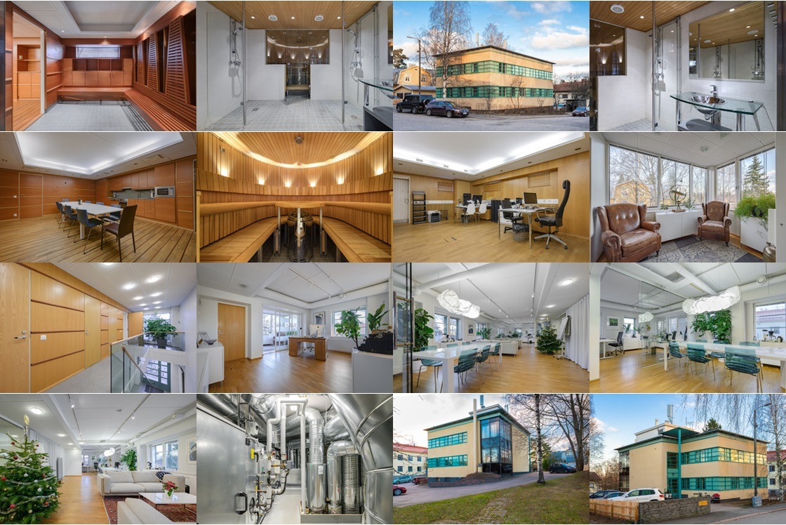 Kokonaisuudessaa talo suo edustavan ja yhtenäisen tilan, jossa on kaikki tarpeellinen viihtyisää työympäristöä varten: Valoisat toimitilat, sosiaalitilat, keittiö, erillinen kahvihuone, neuvotteluhuoneita, sauna jne. Kokonaisuutta voi helposti muokata omaan tarpeeseen.