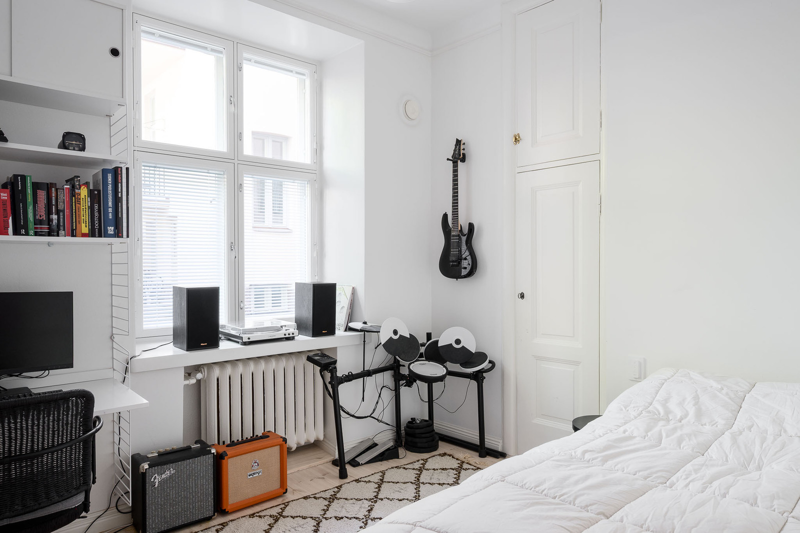 Päämakuuhuoneesta kulku vaatehuoneen läpi kylpyhuoneeseen. Kauniit pariovet aukeavat olohuoneeseen. Suureen makuuhuoneeseen mahtuu hyvin useampikin lapsi ja sen voi helposti avata vaikka olohuoneen jatkeeksi. Eteisen viereisessä makuuhuoneessa on säilytetty alkuperäinen komero. Työhuoneen äänieristetty liukuovi takaa työrauhan kotitoimistolle. |