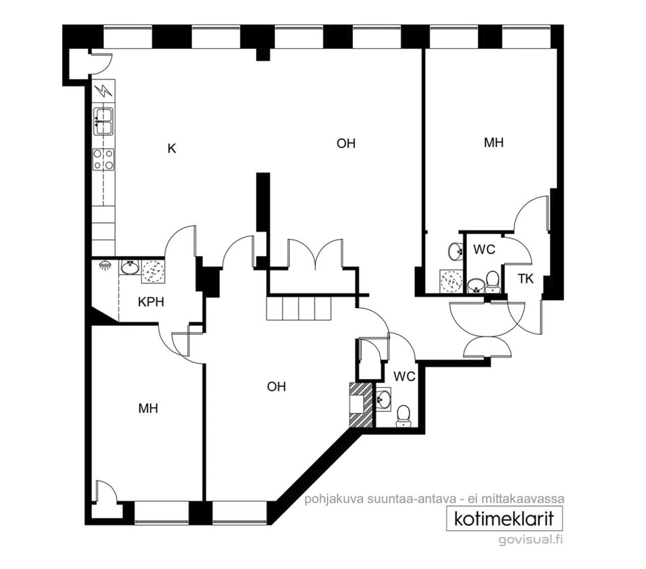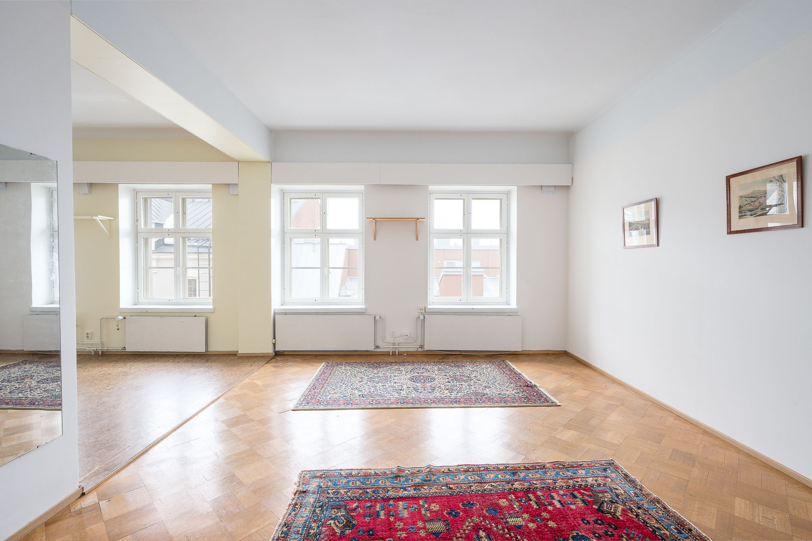 Tilava ylimmän kerroksen asunto väliaikaiseen asumiseen – täydellinen ratkaisu esimerkiksi putkiremontin ajaksi tai oman asunnon remontin ajaksi Katajanokalla, osoitteessa Pormestarinrinne 4, tarjolla harvinainen mahdollisuus vuokrata tilava 120 m² ylimmän kerroksen asunto noin vuodeksi. Tämä asunto soveltuu erinomaisesti esimerkiksi perheelle, joka tarvitsee toimivan väliaikaiskodin oman kodin remontin tai putkiremontin ajaksi. Asunnossa on kolme makuuhuonetta, tilava keittiö, kylpyhuone, sekä kaksi erillistä WC:tä. Erityisen käytännöllinen ratkaisu on kaksi erillistä sisäänkäyntiä, joista toinen johtaa suoraan huoneeseen, jossa on oma WC. Tämä mahdollistaa esimerkiksi erillisen työtilan, vierashuoneen tai perheenjäsenelle oman rauhallisen sisäänkäynnin. Sijainti on erinomainen: hyvät koulut ja päiväkodit ovat kävelymatkan päässä, kantakaupungin monipuoliset palvelut löytyvät läheltä ja ruokakauppa sijaitsee aivan vieressä. Taloyhtiö on hyvin hoidettu ja naapurusto viihtyisä. Vuokra: 2 650 € / kk Vuokra-aika: noin 1 vuosi Koko: 120 m² Kerros: ylin kerros Tilava ja toimiva koti, joka tarjoaa mukavat puitteet väliaikaiseen asumiseen hyvällä sijainnilla. Spacious top-floor apartment for temporary living A rare opportunity to rent a 120 m² top-floor apartment at Pormestarinrinne 4 for approximately one year. Ideal for families needing a comfortable temporary home during renovations or plumbing work in their own residence. The apartment features three bedrooms, a kitchen, a bathroom and two separate WCs. There are two separate entrances, one leading to a room with its own private WC, making it suitable for guests, a home office, or added privacy. Excellent location with schools and daycare within walking distance, grocery store next door, and full city-center services nearby. A well-maintained building with pleasant neighbors. Rent: €2,650 / month Size: 120 m² Lease term: approx. 1 year Rymlig bostad på översta våningen för tillfälligt boende Nu finns möjlighet att hyra en 120 m² stor bostad på översta våningen på Pormestarinrinne 4 för cirka ett år. Passar utmärkt för en familj som behöver ett tillfälligt hem under renovering eller stambyte. Bostaden har tre sovrum, kök, badrum samt två separata WC. Dessutom finns två egna ingångar, varav den ena leder till ett rum med egen WC, vilket ger extra flexibilitet. Skolor och daghem finns på gångavstånd, mataffär finns precis intill, och stadens tjänster finns nära. Trevligt hus och god grannsämja. Hyra: 2 650 € / månad Storlek: 120 m² Hyrestid: cirka 1 år