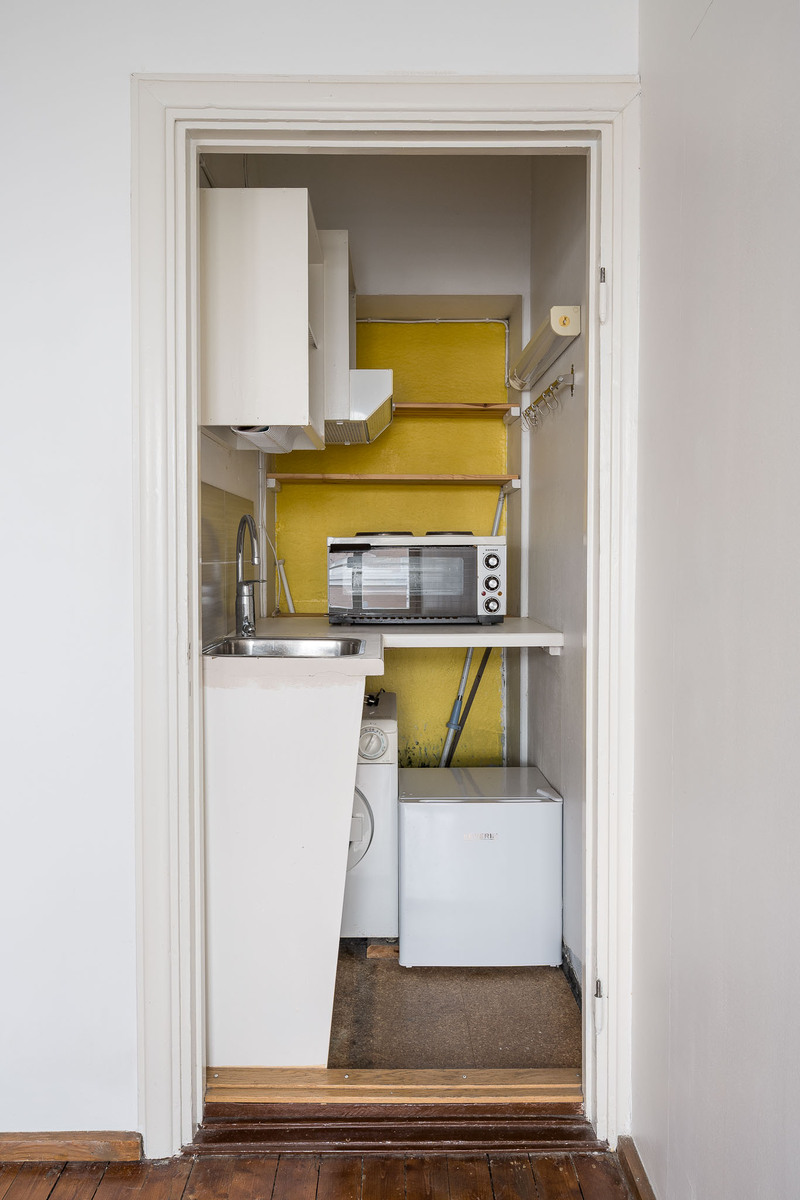 Varustus: jääkaappi/pakastinliesituuletin Liesi: sähköliesi,muu Lattia: muovi Seinät: maalattu |