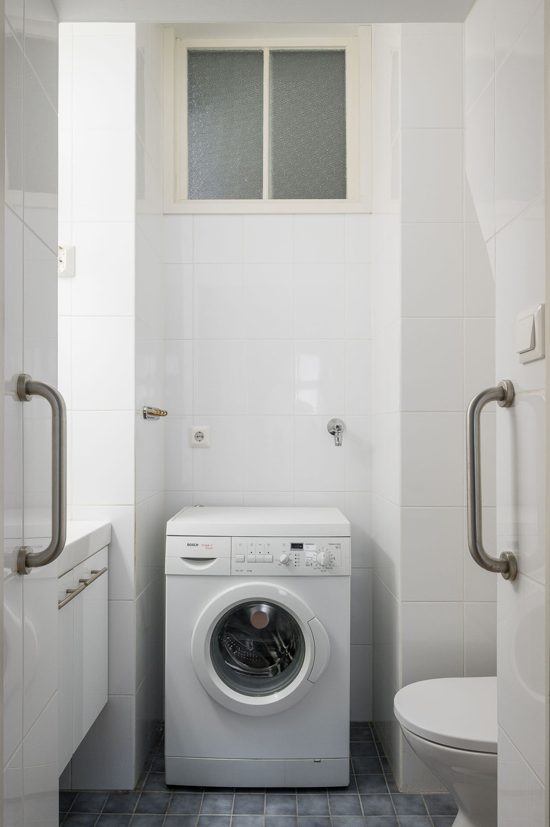 Makuuhuoneen yhteydessä erillinen wc, jossa wc, istuin, allaskaapisto, peilikaappi ja pesukoneliitäntä. Lattia on laatoitettu ja seinät marmoria. Tilassa on lattialämmitys. |