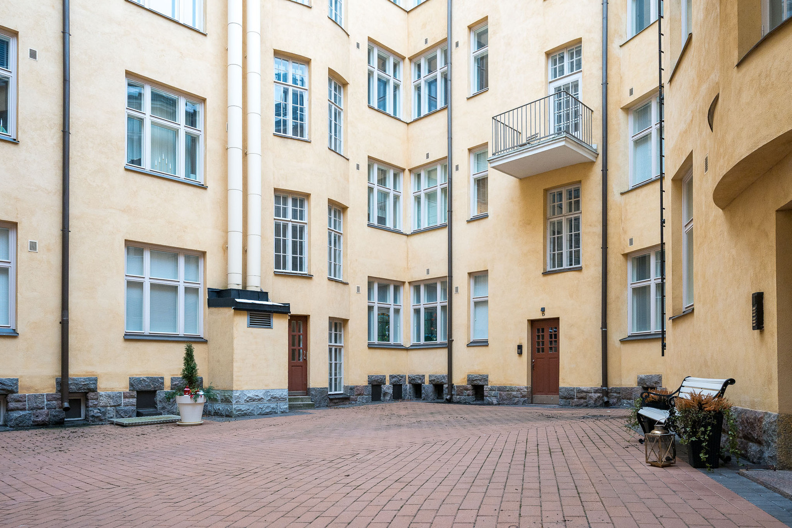 | Tehdyt korjaukset: | 2024 Ikkunoiden uusiminen. Julkisivun maalaus ja kameravalvonta 2022 Yhtiön huoneiston F39 saneeraus valmistunut 2021 Porraskäytävien tammiset ulko-ovet uusittu 2019 Piha-alueen kunnostus 2018 Taloyhtiön huoneiston B13 peruskorjaus 2017 Sisäpihan julkisivujen ja tuuletusparvekkeiden uusimistyöt sekä ikkunoiden ja vesikaton kunnostustyöt 2016 E-portaan maalaustyöt 2015 Kaukolämpölaitteistojen uusiminen. Katon ja sisäpihan puoleisen julkisivun sekä parvekkeiden kuntotutkimus 2014 Katon tervaus, matala osa. Kadunpuolen ikkunoiden ulkopuolinen huoltomaalaus 2007 Kellaritilojen muutostyö (laaja muutos). Putkisaneeraus 2004 Katon tervaus 2002 Katuikkunoiden maalaus 1997 Pääviemäri sekä pohjaviemärit ja pohjakerroksen vesijohdot 1993 Porraskäytävät, paitsi E-porras, joka tehty aikaisemmin 1992 Julkisivutyöt 1954 Putket |