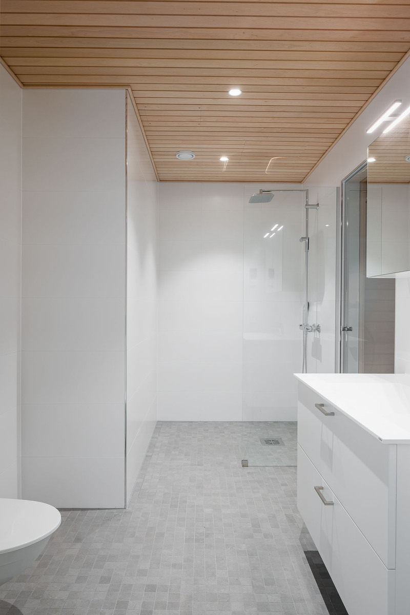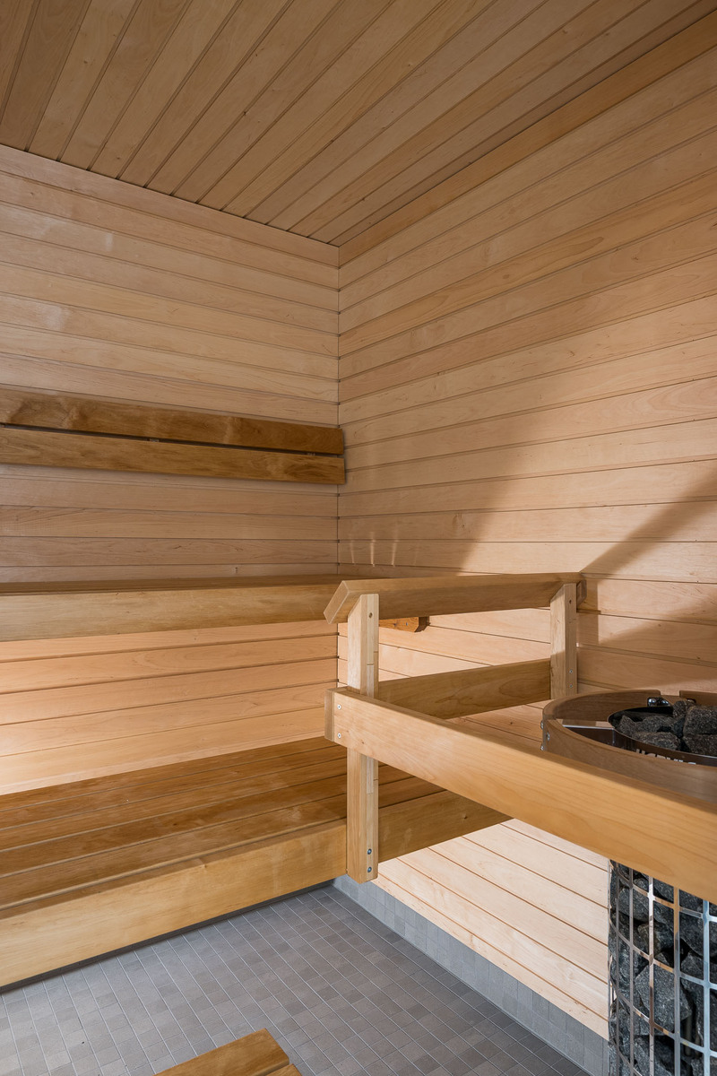 Huoneiston kolme makuuhuonetta, erillinen kodinhoitohuone ja modernin tyylikkäät kylpyhuonetilat muodostavat toimivan kauniin kokonaisuuden suuremmallekin perheelle. Huoneistossa on myös oma sauna. Huoneistoissa on vesikiertoinen lattialämmitys ja -viilennys, lämmitysmuotona on maalämpö, hoitovastike vain 4,20 €/kk.