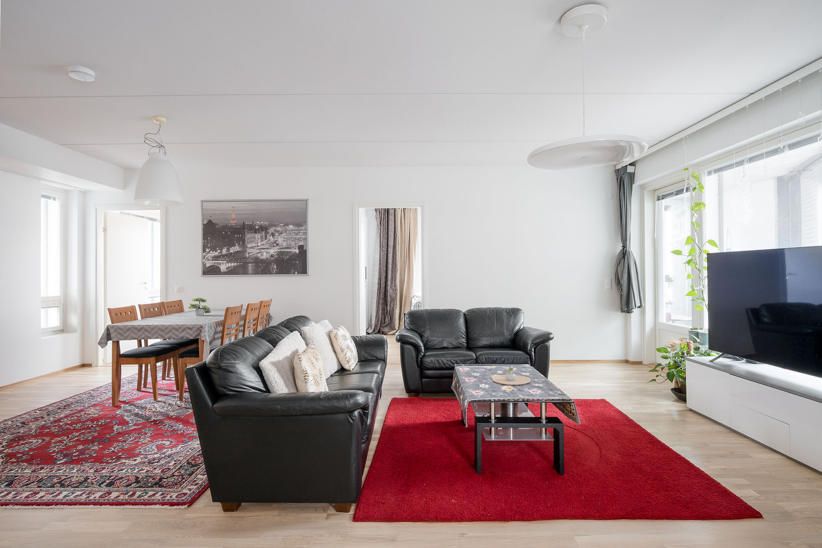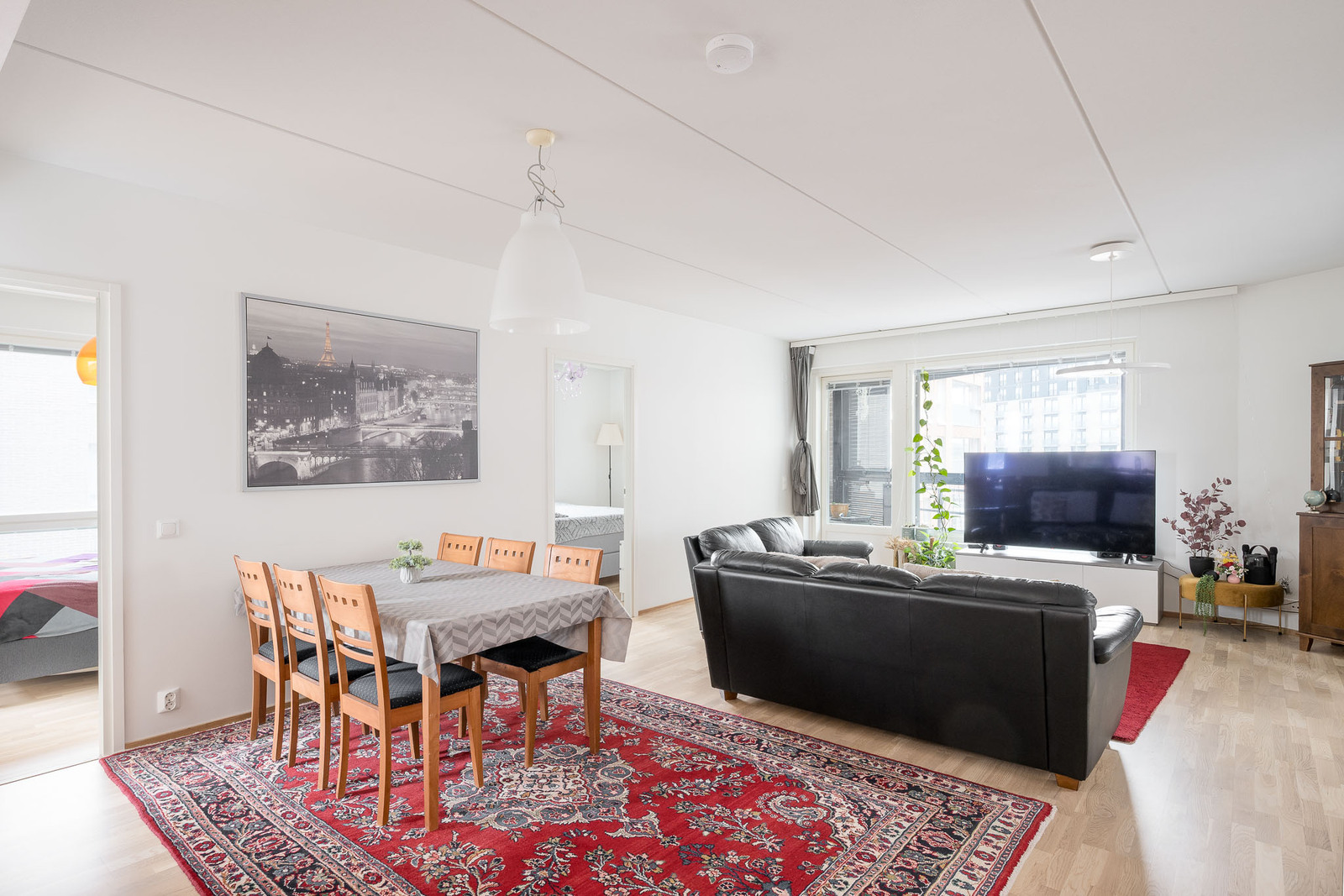 Seinämateriaalit: Huoneiston seinät maalattu. Lattiamateriaalit: Huoneiston lattia tammisauvaparkettia. |
