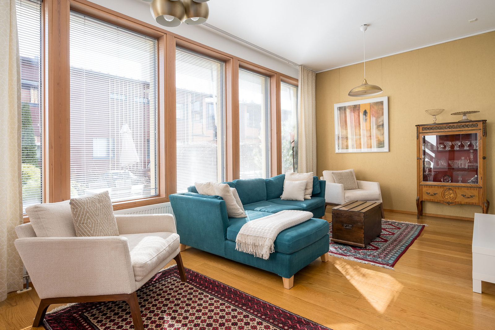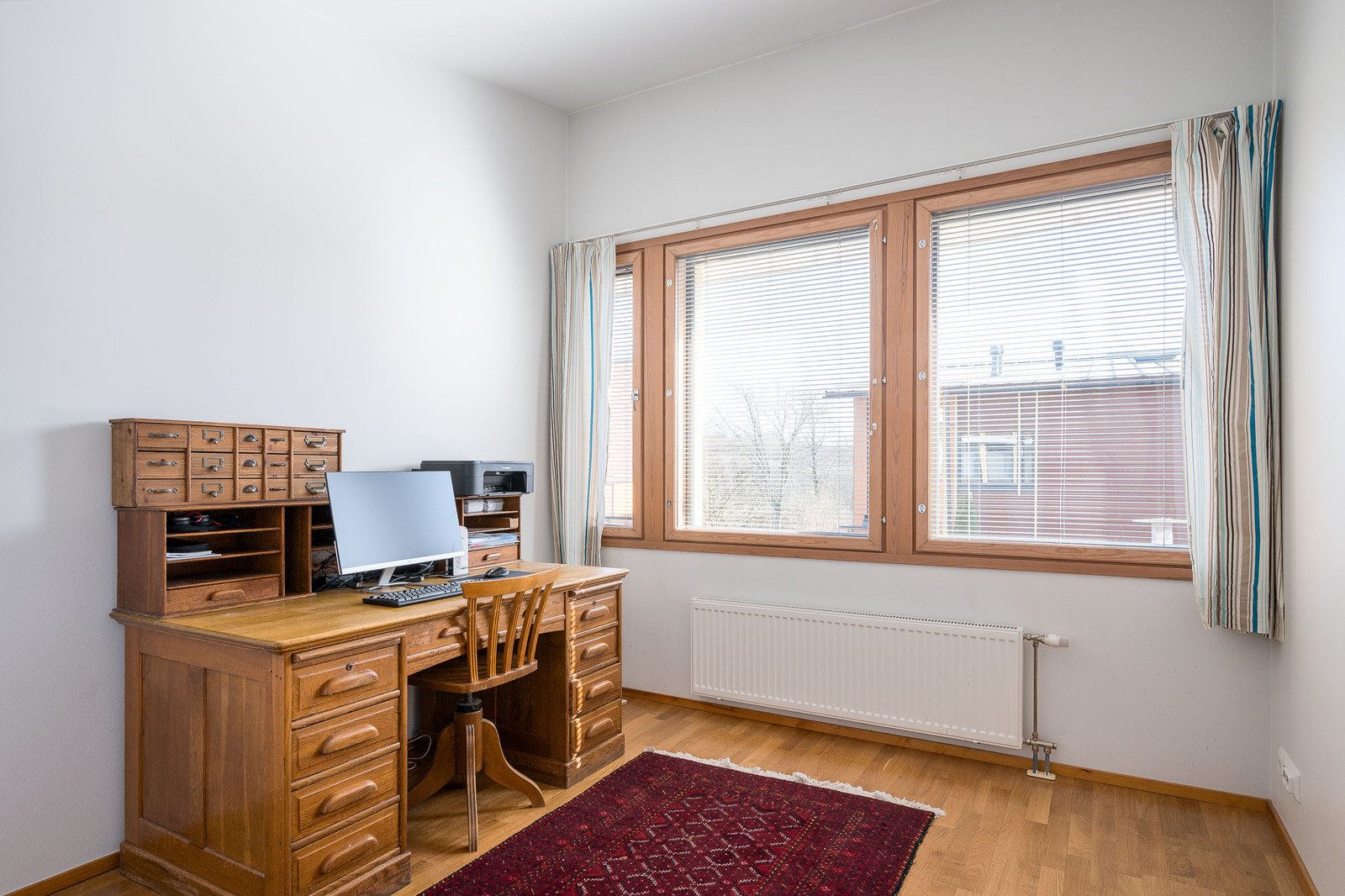 Koko huoneistossa on hyväkuntoinen tammiparketti ja seinät maalattu /tapetoitu. Olohuoneesta on kulku viherhuoneen kautta omalle suojaisalle piha-alueelle.