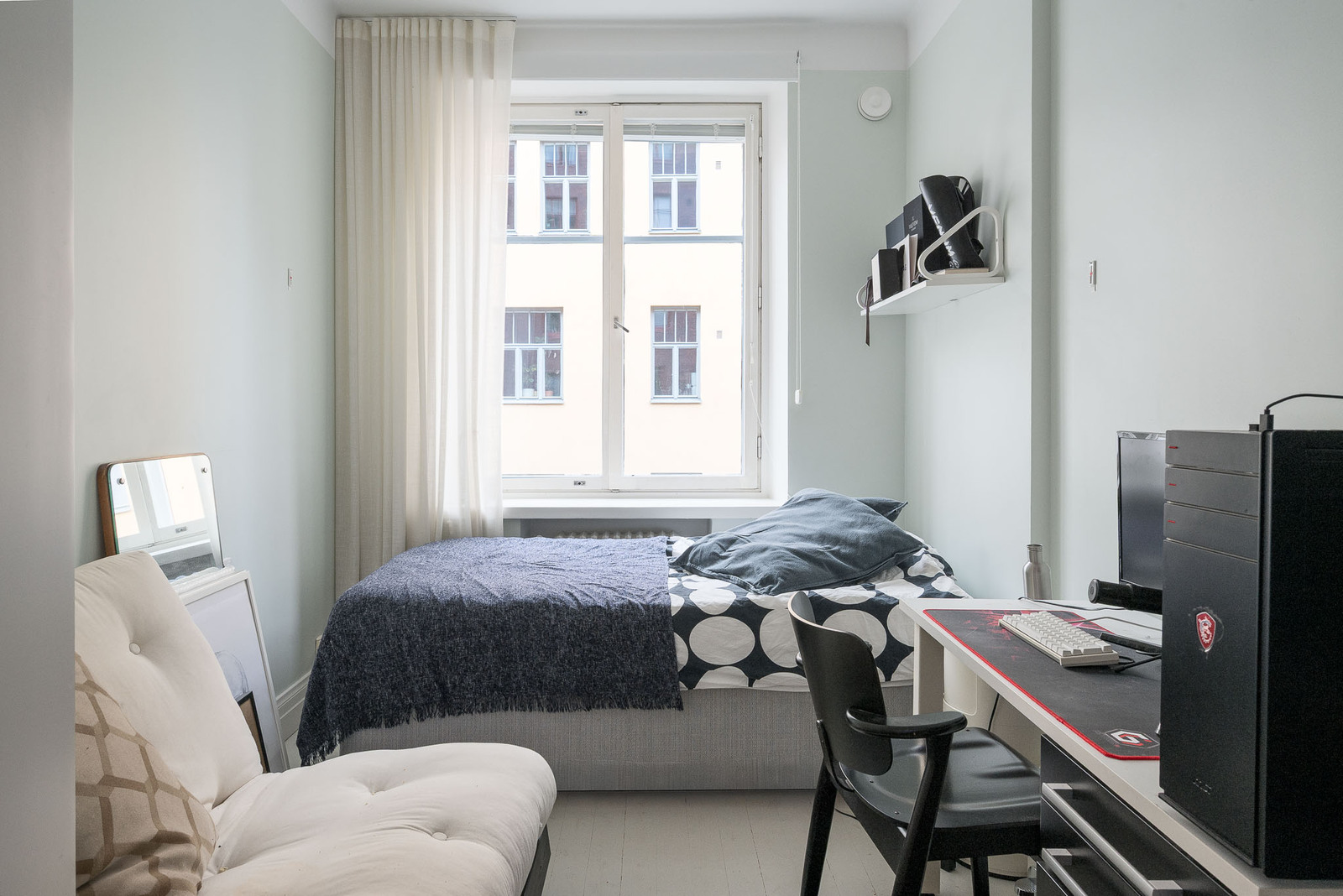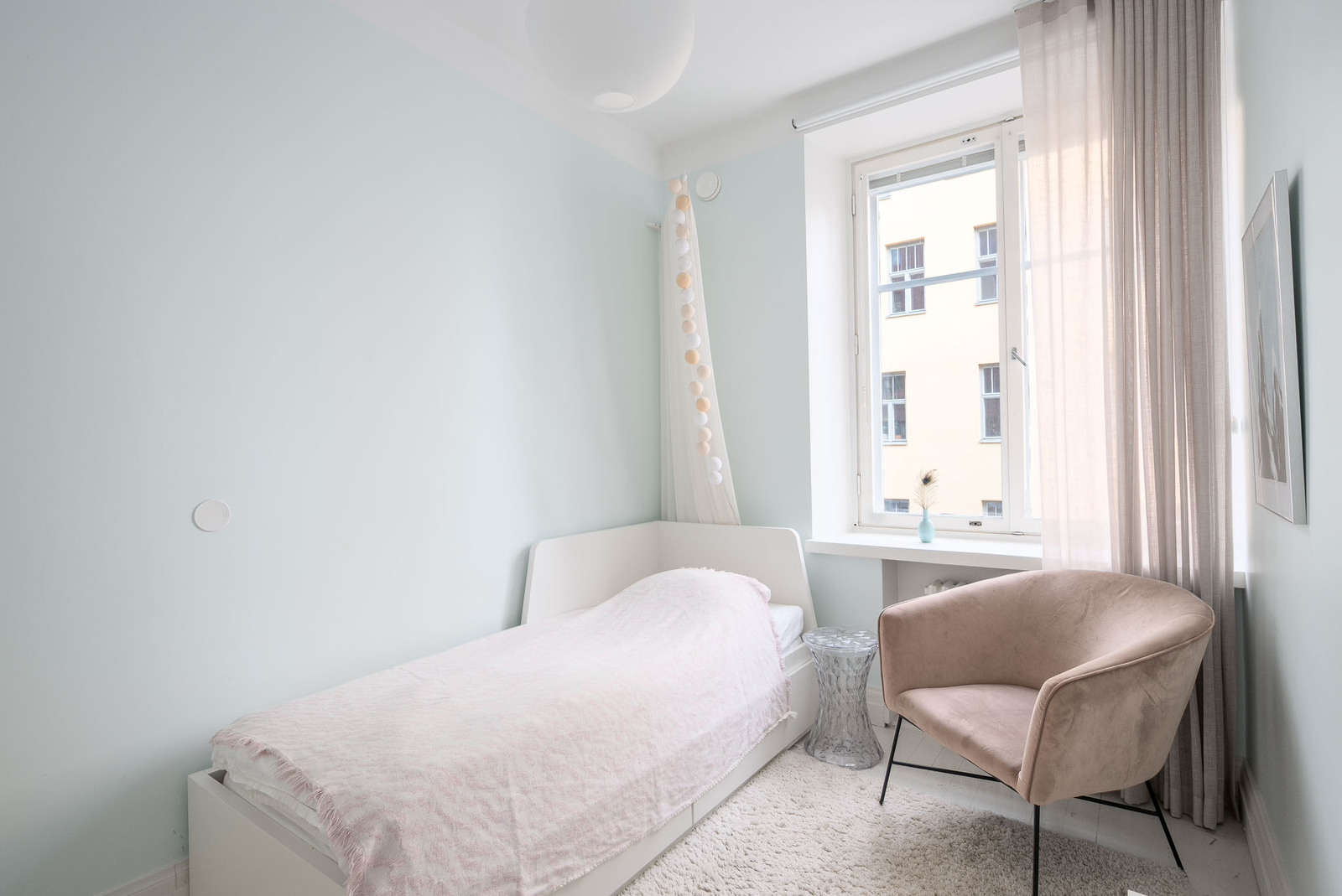 Makuuhuoneiden ja eteisen kiintokalusteet on teetetty puusepällä samoin kuin eteisen kiinteä hansikas- ja laukkukaappi sekä naulakko ja alalaatikosto. Päämakuuhuoneen yhteydessä on pienempi huone, joka soveltuu hyvin lapselle, kotitoimistoksi tai vaikka pukeutumishuoneeksi. |