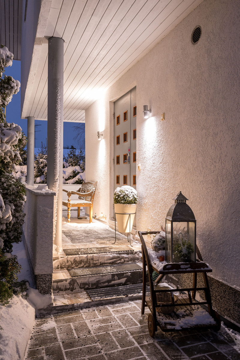 Upea, ainutlaatuinen Jämerä desing-talo täynnä valoa, tilaa ja tunnelmaa! Tapanilassa, omalla tontilla, rauhallisella alueella kuitenkin kaikkien palvelujen läheisyydessä. Talo tulvii luonnonvaloa ja korkeat, lähes 7-metriset ikkunat ja yhtenäinen alakerta tekevät talosta avaran ja ilmavan. Kiinteät seinä- ja kattovalaisimet antavat kauniin ja kodikkaan tunnelman sekä sisätiloissa että terasseilla. Sisään tullessa avautuu talon sydän, tilava keittiö yhdistyen lähes 7 metriseen kauniiseen ruokailutilaan, josta avautuu suorayhteys pari porrasta alempana olevaan isoon olohuoneeseen. Keittiö on tilava ja hyvin varusteltu (jääkaappi-pakastin -yhdistelmä, erillinen tilava kylmiö ja viinikaappi). Mikroa ja astianpesukonetta lukuun ottamatta on kaikki kodinkoneet uusittu 5 vuotta sitten. Kokkausta varten on erillinen saareke, jossa on samalla helppo seurustella ruokapöydän äärellä istuvien perheen ja ystävien kanssa. Ruokatilasta ja olohuoneesta avautuvat isot lasitetut terassit, joissa voi viettää aikaa aikaisin keväästä myöhäiseen syksyyn säältä suojassa vaikka grillaten. Isommalta terassilta avautuu suojaisa ja vehreä piha, joka on sekä laatoitettu (pihakalustesarja) että nurmella. Olohuoneen keskiössä on iso, lasiluukullinen takka, joka antaa valoa joka puolelle luoden kauniin tunnelman sekä toimii osana lämmitystä. Sisääntulossa on tilava tuulikaappi, jossa on erillinen vaatehuone sekä tilavat kaapistot. Sisääntulokerroksessa on erillinen wc, kodinhoitohuone omalla sisäänkäynnillä, kahden suihkun ikkunallinen kylpyhuone, wc ja sauna. Kylpyhuoneesta pääsee kätevästi vilvoittelemaan lasitetulle terassille sekä suojaisalle pihalle. Yläkertaan vievissä umpiportaissa on kauniit kiinteät valaistukset sekä puolivälissä iso ikkuna. Yläkerrassa on aula, jossa sijaitsee vaatehuone. Aulasta näkymä alakerran olohuoneeseen. Aulan molemmin puolin on kaksi tilavaa makuuhuonetta. Päämakuuhuoneessa on ilmalämpöpumppu sekä katoksellinen, pieni parveke. Makuuhuoneesta sekä aulasta käynti kylpyhuoneeseen, jossa on wc, ovellinen suihkutila, kaapisto ja lavuaari sekä poreallas kahdella kattoikkunalla, joissa sähköllä toimivat sälekaihtimet. Porealtaassa voi ihastella tähtitaivasta ja kuunnella katossa olevasta kaiuttimesta rentouttavaa musiikkia. Toisessa makuuhuoneessa on paljon kaappitilaa sekä kattoikkuna. Säilytystilaa tässä kodissa on runsaasti. Kaksi tilavaa vaatehuonetta, kaapistoja (myös khh:ssa). Autokatoksen yhteydestä löytyy kaksi tilavaa lämminvarastoa kaapistoineen. Kylmäsäilytystilaa on pihavaraston lisäksi myös autokatoksen sisäkatossa, johon pääsee luukusta vedettävillä portailla. Talon ja autokatoksen suojaan jää vehreä ja kaunis piha, johon voi kalustaa terassien lisäksi niin ruokailu- kuin oleskelualueita vaikka auringonottoa varten. Autokatoksesta löytyy sekä auton ajastimella toimiva sisälämmitinvirtalähde että hybridiauton latauspistoke (hidas ja voimavirtakaapissa nopea pistoke). Oma 804m2 tontti on vehreä ja orapihlaja-aidalla sekä tuijapensailla suojattu ja pihalta löytyy ikivihreän istutusaltaan lisäksi valkoiset syreenit ja koristeomenapuu, jotka luovat pihalle myös auringolta suojassa olevia alueita. Pihaa komistaa myös lipputanko. Edulliset asumiskustannukset! Nykyisen perheen kulut yhteensä noin 512€/kk! Tämä hurmaava talo tulee nähdä ja kokea itse, sovi oma esittelyaikasi välittäjältä. MYYNTI JA ESITTELY: Nina Asteljoki Yrittäjä, Tj, LKV p. 0400 444 220 nina@kotimeklarit.com